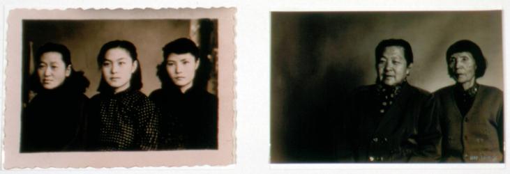 Three Sisters is one of Hai's early works. It belongs to a series of diptych images the artist produced in the late 1990s and early 2000s, in which he re-creates photographs of people who were originally taken between the 1940s and 1970s. By composing the subjects in the same arrangements as the original photos and juxtaposing the two images, Hai sets up a poignant confrontation between past and present. In this diptych, for example, the contrast between the hopeful-looking young women in the earlier photograph and the missing figure and obvious signs of aging on the faces of the two remaining women in the later photograph, forces us to reflect on the turbulent history of modern China and the very personal toll it has taken on individuals and families. Even without knowing the specific story of these three sisters, viewers can empathize with them based on their own experiences with the passage of time. The visual premise of the work is quite simple, but the emotional impact is complex and marks it-and the larger series to which it belongs-as one of the most interesting and successful examples of Chinese photography from the 1990s.