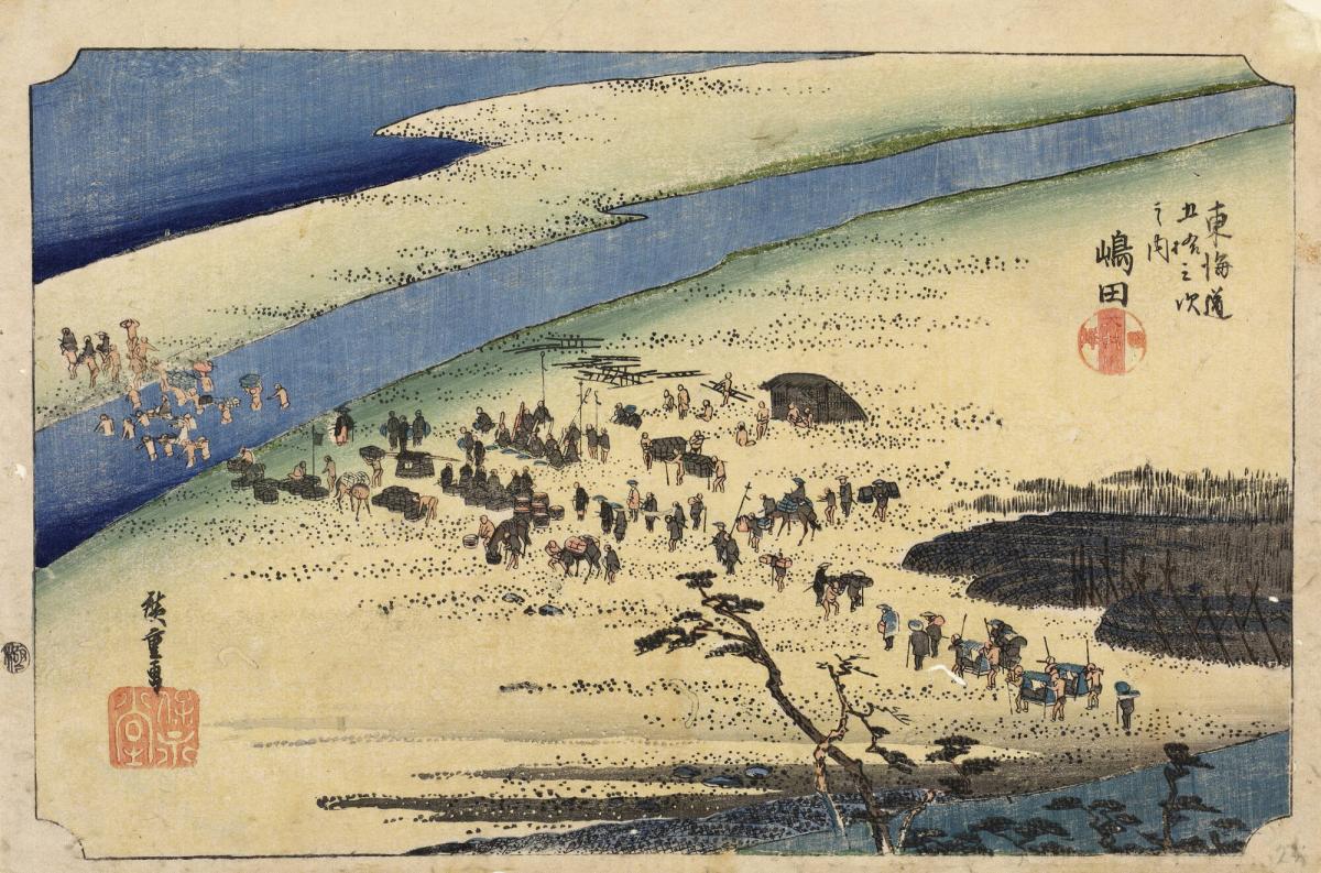 The Suruga Bank of the Oi River at Shimada, no. 24 from the series Fifty-three Stations of the Tōkaidō