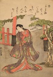 Lady Standing by the Entrance to a Shrine, no. 18 from an untitled series of illustrations from Tales of Ise