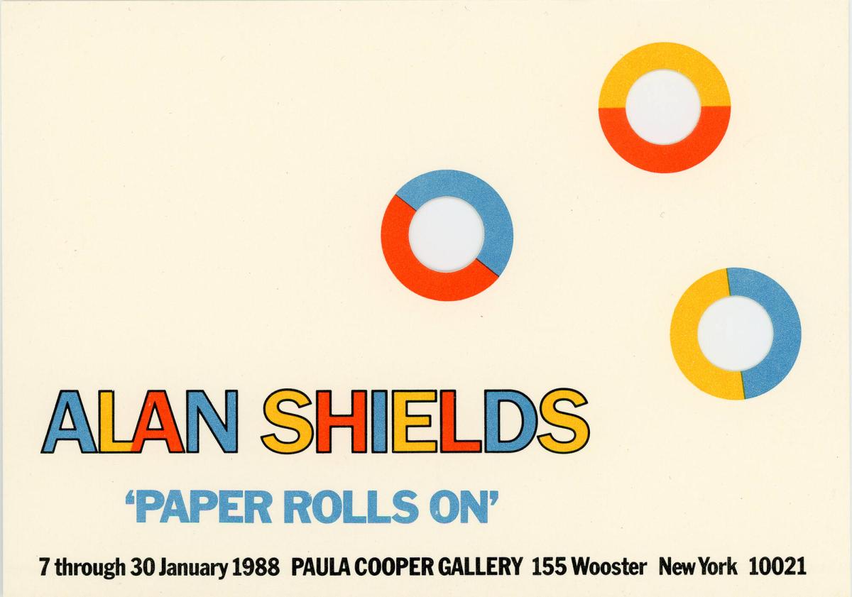 Exhibition Announcement for Alan Shields, Paper Rolls On, 7 through 30 January 1988, Paula Cooper Gallery