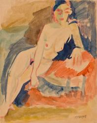 Not on viewEarlier in his career, Pechstein was a member of the important group of German Expressionist artists known as Die Brücke, and was a friend of Ernst Ludwig Kirchner, whose work is exhibited on the opposite wall. Working in pure, flat areas of color both in this work and in his paintings, it is perhaps not surprising that he also for a time worked as a designer of stained glass. His interest in Oceanic art and the work of Gauguin is also apparent here; inspired by that artist, he had traveled to the South Seas in 1914, prior to serving in the First World War. Made immediately following the war this watercolor is one of a series of nude studies of this model.