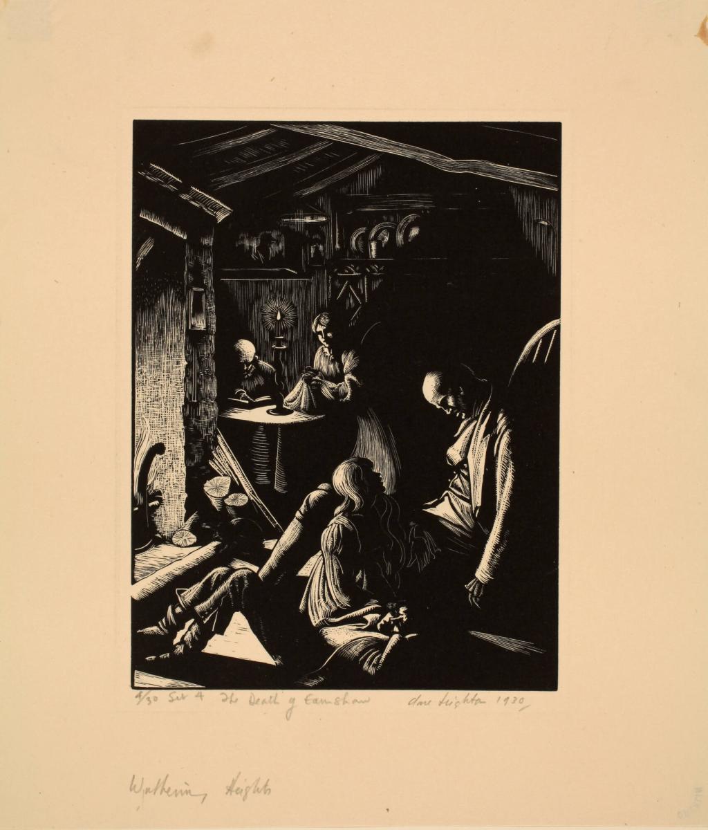 Clare Leighton, known for her illustrations of nineteenth-century British novels, also wrote prolifically on the virtues of rural life in an increasingly urban and industrial world. These wood engravings for a 1931 edition of Wuthering Heights combine Leighton's cherished English countryside with the brooding moors of Emily Brontë's imagination.