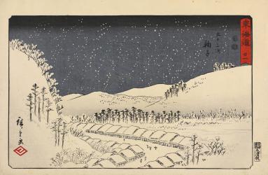 Snow at Mariko, no. 21 from the series The Fifty-three Stations of the Tōkaidō, also called the Reisho Tōkaidō