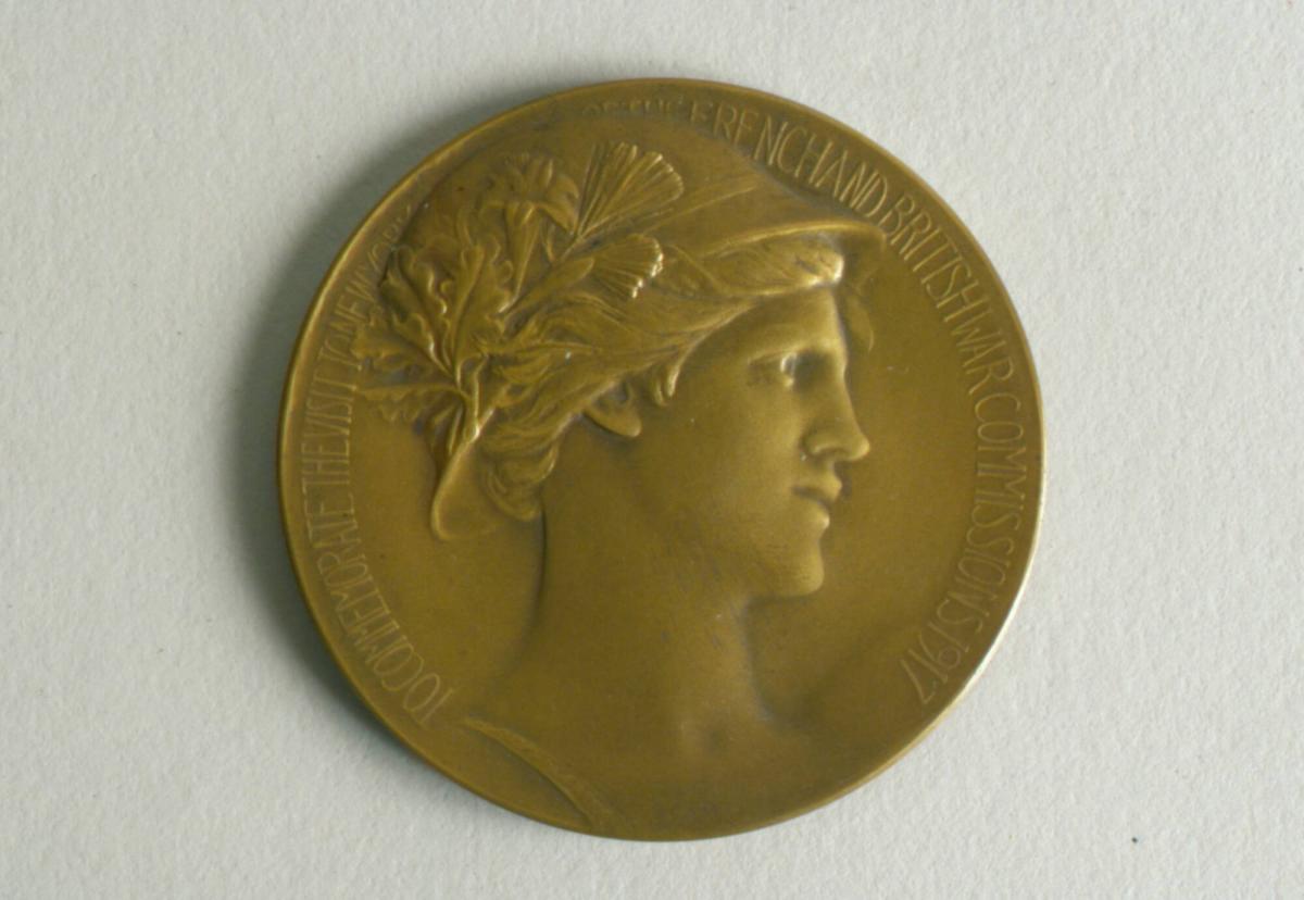 Medal to Commemorate the Visit to New York of the French and British War Commissions: Recto, Head of a Woman Encircled by Inscription; Verso, Gallia and Britannia greeting Columbia