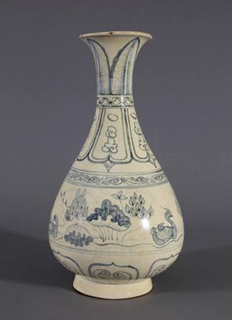 Vietnam in the late 15th to early 16th centuries was another high point for ceramics. China, for hundreds of years the largest supplier of ceramics, suddenly restricted exports, creating a vacuum in the international market. Vietnamese ceramic makers took advantage of this situation and significantly raised the quality and volume of their production, becoming one of the leading sources of ceramics in the Chinese style like this blue underglaze, pear-shaped vase, a type called Yùhúchūnpíng 玉壺春瓶.