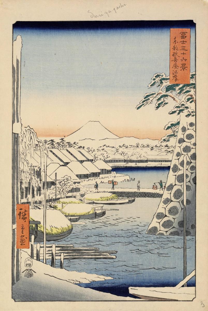 The Sukiya Bank of the Moat of Edo Castle in the Eastern Capital, no. 3 from the series Thirty-six Views of Mt. Fuji