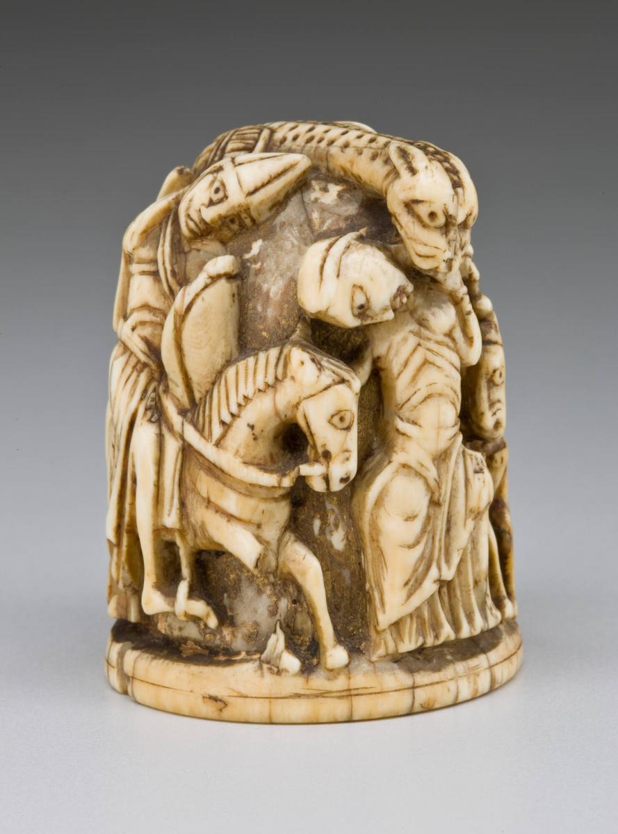 On viewThis chess piece depicts the legend of Saint George and the dragon that rapidly gained popularity in Byzantine and Western Christian traditions via the Crusades in the 12th century. The sword-wielding knight slaying a dragon represents an allegory of good versus evil.