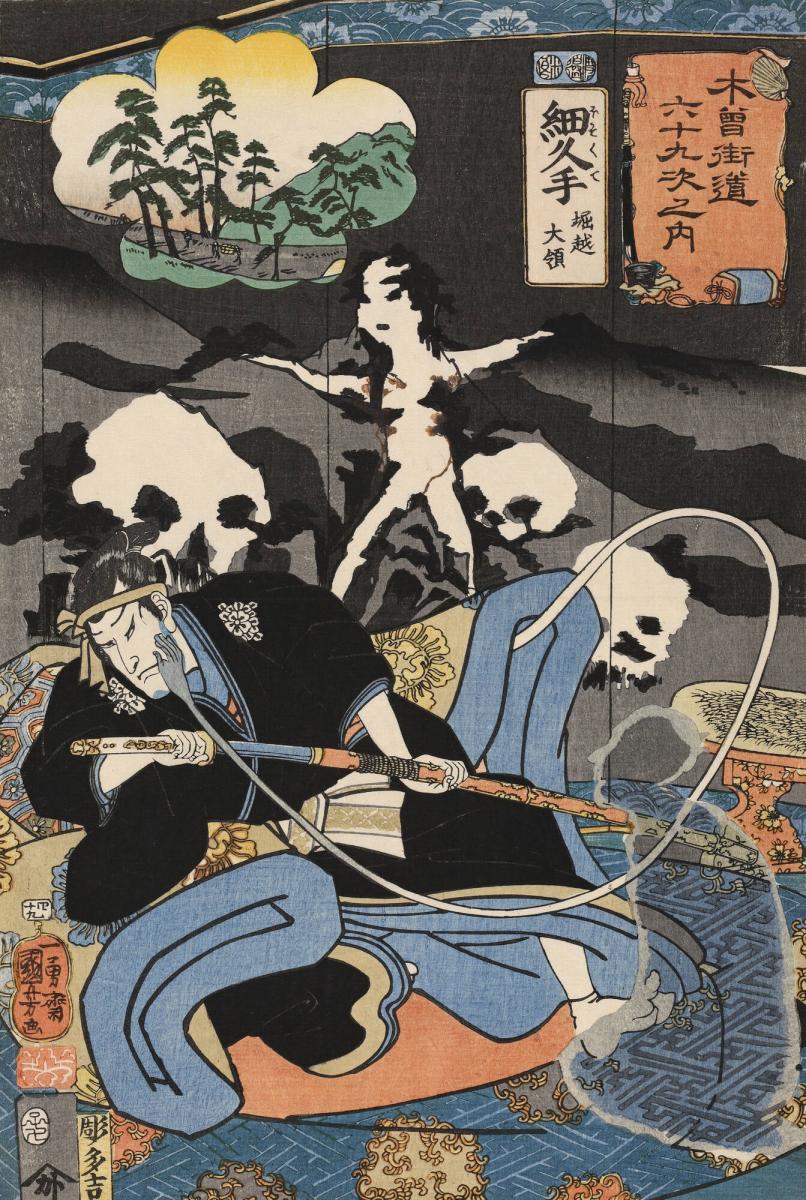 Hosokute: Horikoshi Tairyo Haunted by the Ghosts of His Victims, no. 49 from the series The Sixty-nine Stations of the Kisokaidō