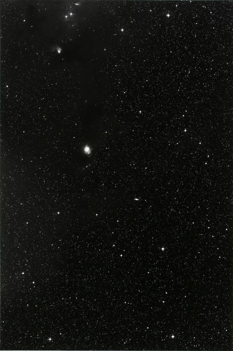 Not on viewIn his Constellation series, conceptual artist Thomas Ruff reprinted photographs of deep space from negatives taken at the European Southern Observatory in Chile. The coordinates of this image are within the Southern Hemisphere constellation Carina, which includes the Carina Nebula, a vast region of star formation. Its areas of dark absorption nebulae and light emission nebulae are visible in the upper left-hand quadrant of the photograph. Ruff's appropriation of such scientific documents, however, seems to highlight their beauty as much as their content.