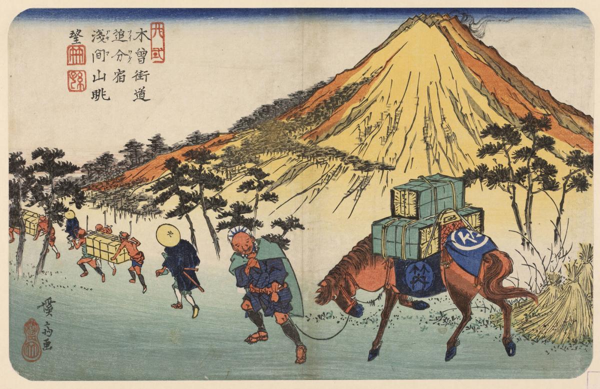 View of Mt. Asama from Oiwake Station, no. 21 from the series A Set of Pictures of Kisokaidō