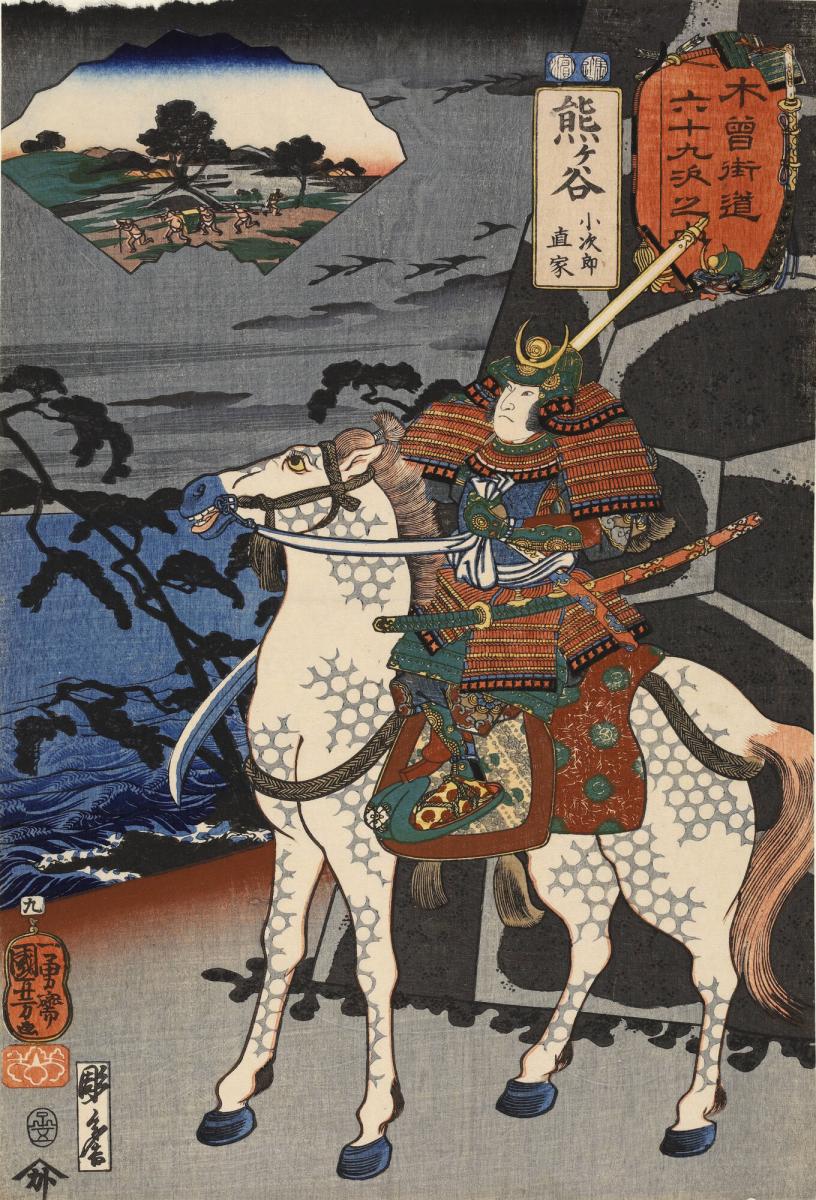 Kumagaya: The Warrior Kojiro Naoie on Horseback, no. 9 from the series The Sixty-nine Stations of the Kisokaidō