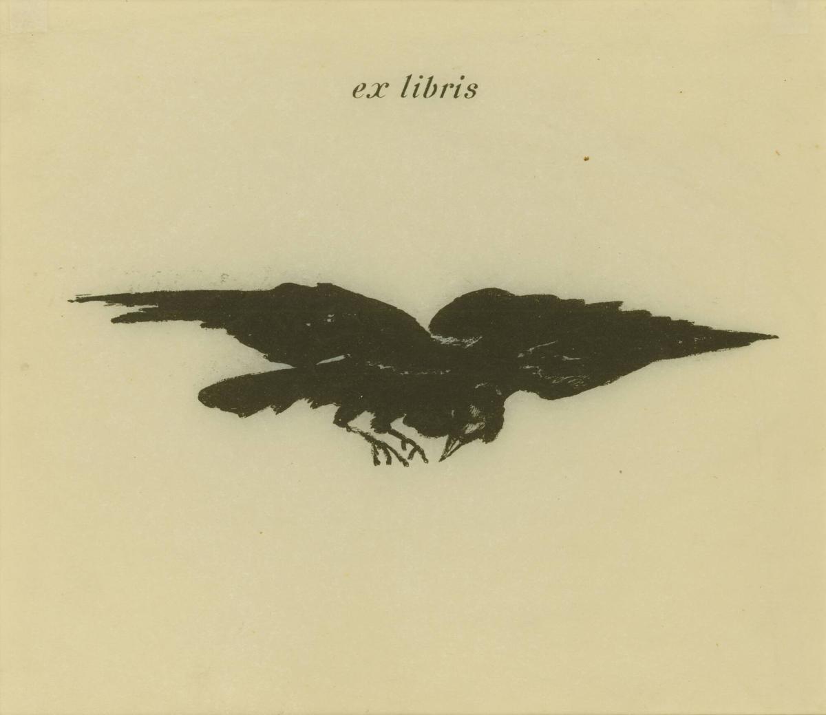 Not on viewIn 1875, poet Stéphane Mallarmé published Le Corbeau, his French translation of Edgar Allan Poe’s “The Raven.” Mallarmé asked his artist-friend Edouard Manet to provide illustrations for the limited edition publication, which sold for a mere 25 francs. Manet complied with a series of five lithographs which presented four crucial moments in the narrative, as well as an ex libris (bookplate). The dark, sketchy atmosphere of Manet’s compositions mirrors the foreboding tenor of Poe’s poem, which tells of a heartbroken lover tormented by the midnight intrusion of a talking raven in his chamber. One of Poe’s best-known works, the tale of the raven who quothed “Nevermore” has been a popular source for other artist-illustrators, including Gustave Doré, John Tenniel, and James Carling.