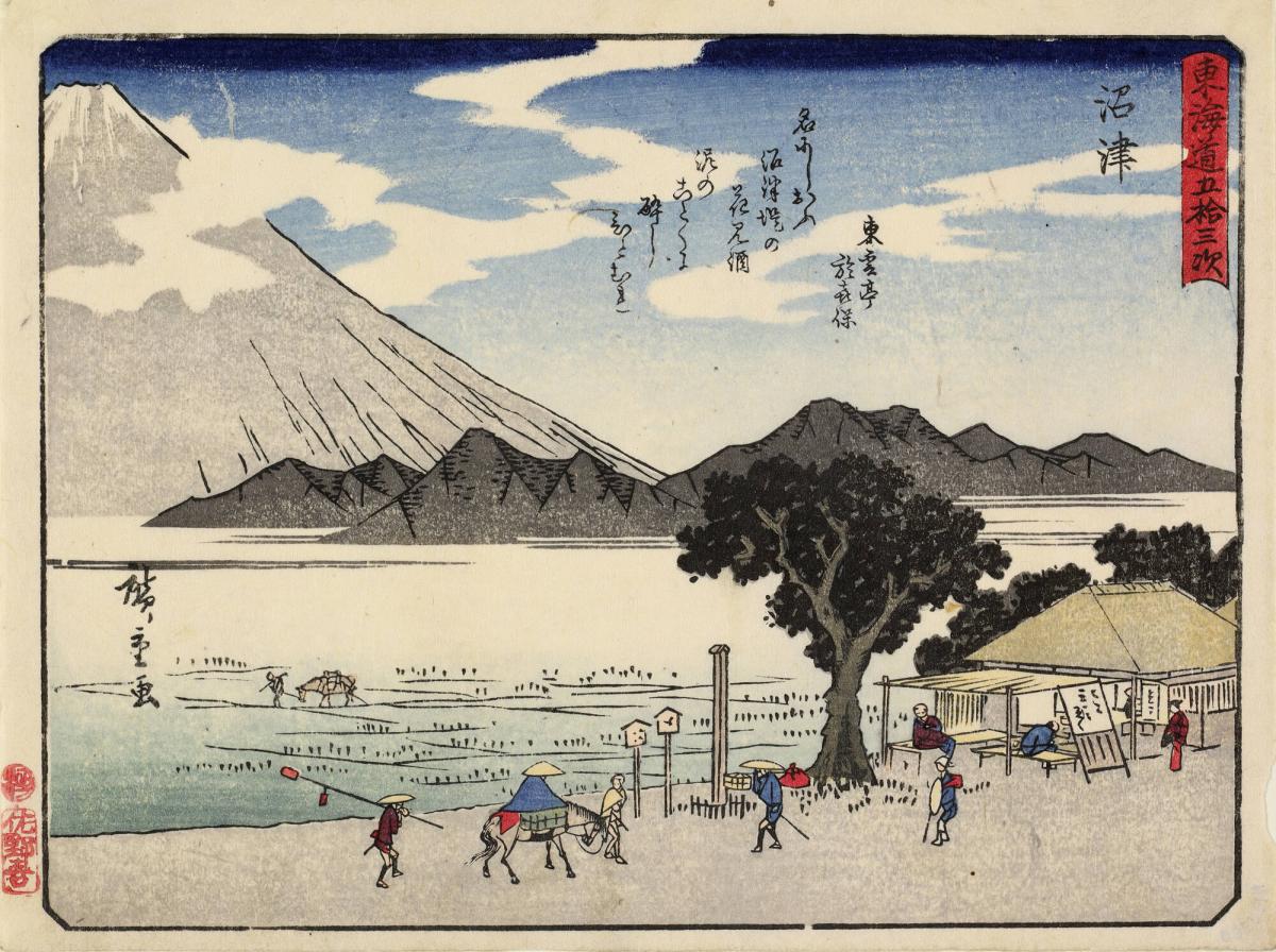Fuji from Numazu, with a Poem by Tountei Okiho, no. 13 from the series The Fifty-three Stations of the Tōkaidō