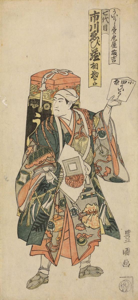 The Actor Ichikawa Ebizo IV as Toraya Tokichi Disguised as an Uiro Seller in a Memorial Performance for the Actor Ichikawa Danjuro VI at the Nakamura Theater