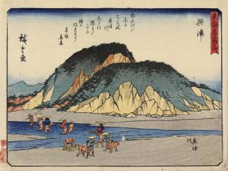 Fording the Okitsu River, with a Poem by Toshigaki Maharu, no. 18 from the series The Fifty-three Stations of the Tōkaidō