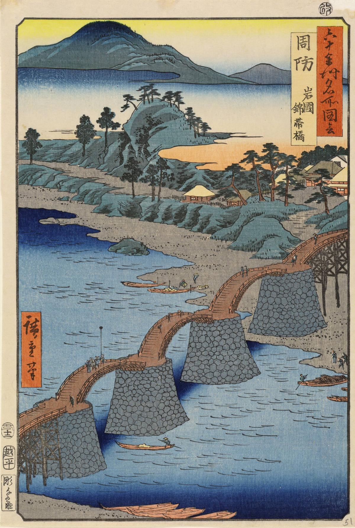 The Brocade Bridge at Iwakuni in Suo Province, no. 51 from the series Pictures of Famous Places in the Sixty-odd Provinces