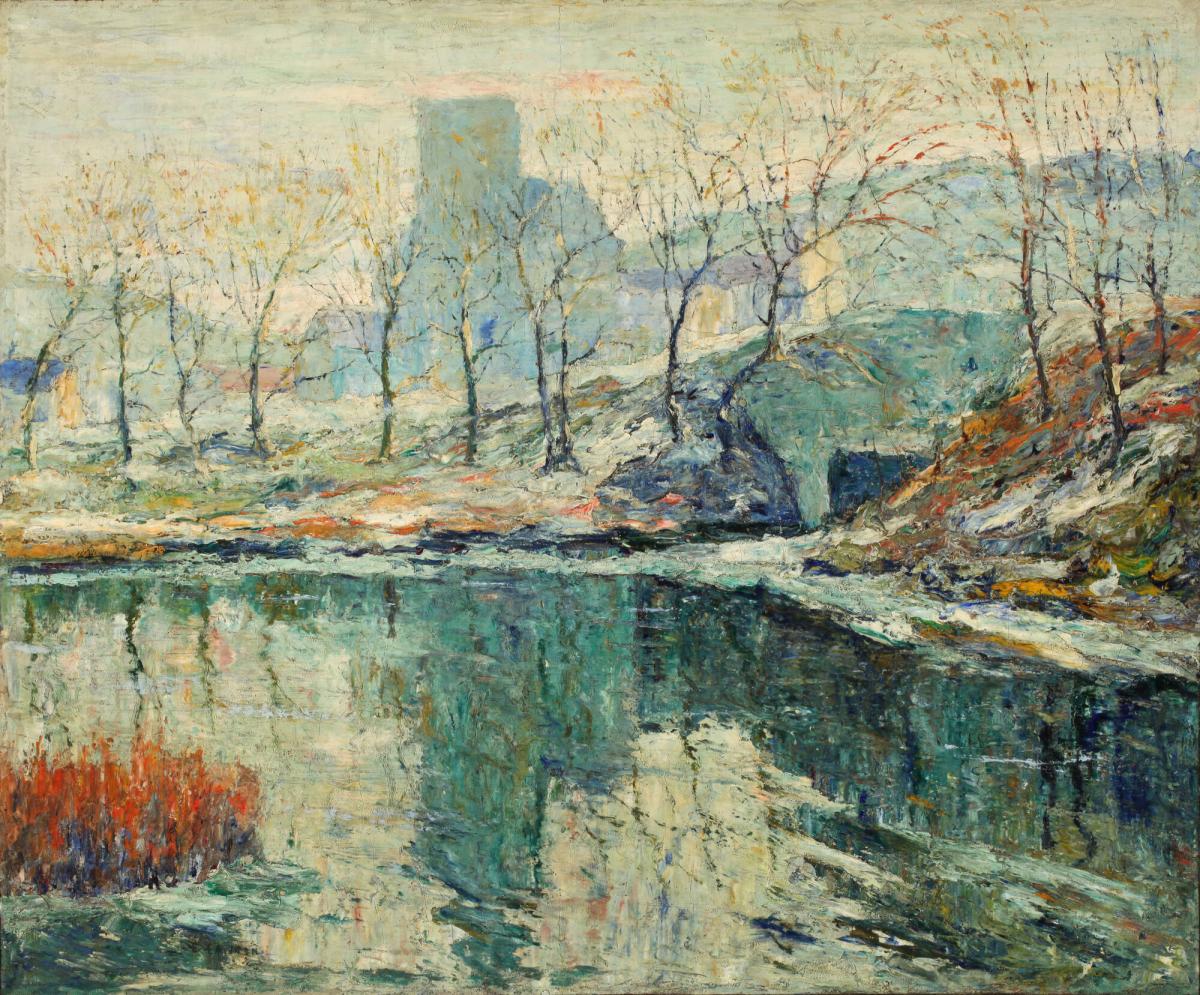 Not on viewLawson's paintings couple a distinctive Impressionist technique with a fascination for man-made structures and their relation to the natural environment. The rapid expansion of New York City, here encroaching on the more sparsely settled northern portions of Manhattan, is viewed through the veiling effects of light, color, and Lawson's brilliant brushwork.