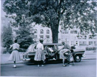 In his photo-documentation of the event, Withers captures (from left to right) Carlotta Walls, Melba Patillio, Elizabeth Eckford, and Minnie Jean Brown being escorted by a federally appointed paratrooper on their first day of school. In the background, the blockade of students and the Arkansas National Guard to prevent the students’ entry is visible at the school entrance. Withers’s “Little Rock Nine” group stand in the crux of the tensions between state and federal rights and the institutionalized racism pervasive throughout the American educational system at that time.
