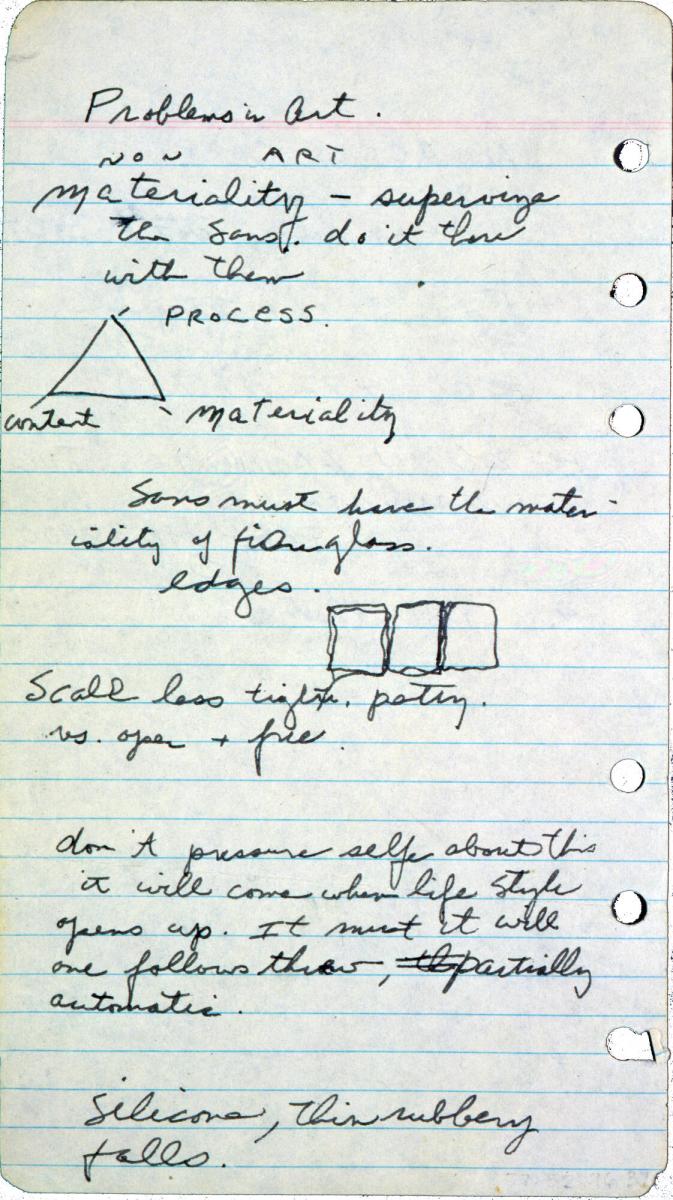 MediumBlack ink on white, ruled notebook paper with six holes punched on left