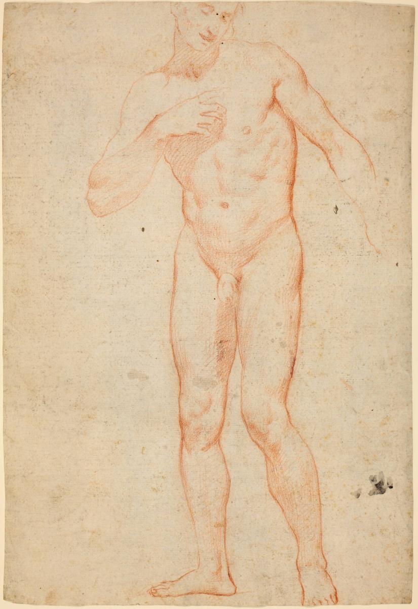 MediumRed chalk and charcoal with white heightening on laid paper; black chalk heightened with white chalk