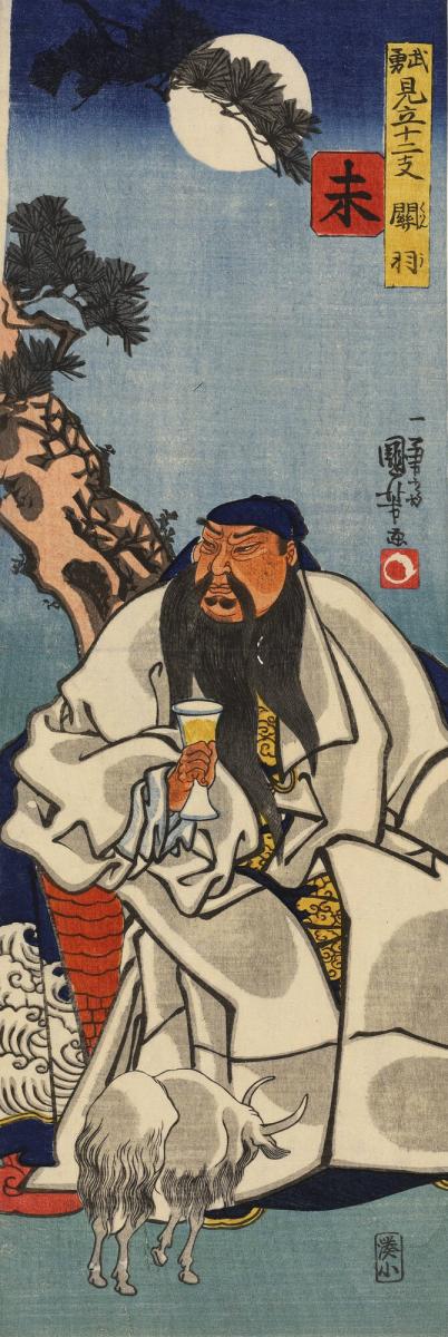 Guanyu and His Sheep in Moonlight, no. 8 from the series Bravery Matched with the Twelve Animals of the Zodiac