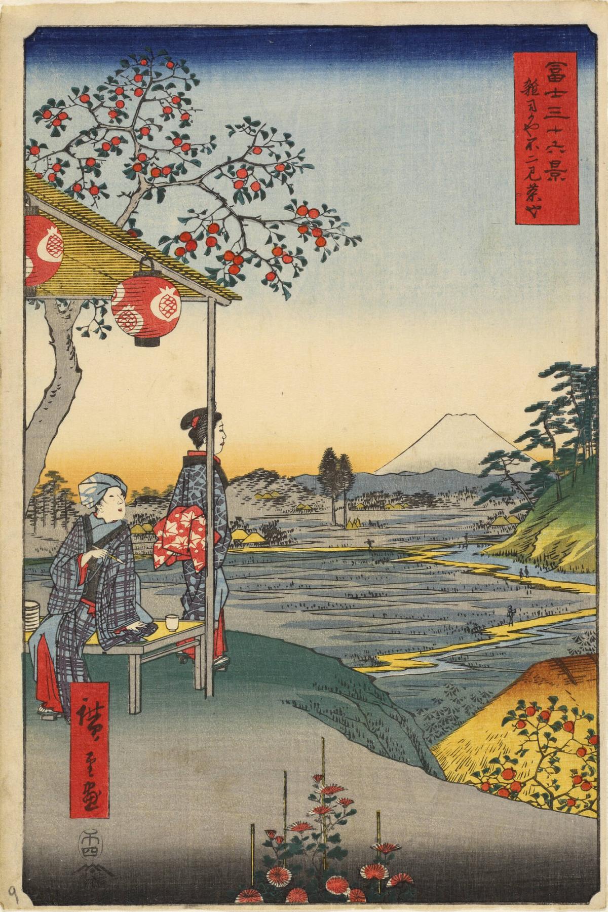 The Teahouse with the View of Mt. Fuji at Zoshigaya, no. 9 from the series Thirty-six Views of Mt. Fuji