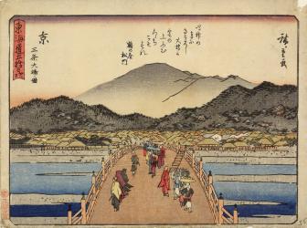 Sanjo Bridge in Kyoto, with a Poem by Tsurunoya Matsukado, no. 55 from the series The Fifty-three Stations of the Tōkaidō