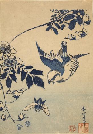 Sparrow, Cicada and Flowers, from an untitled series of pictures printed in blue