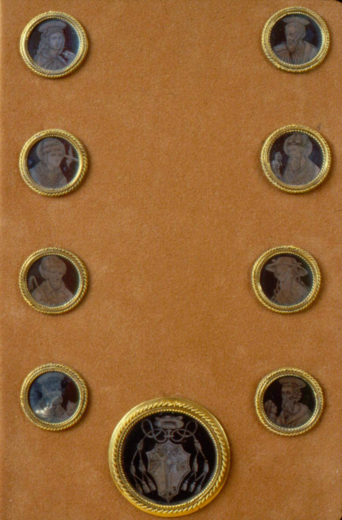 Nielloed Medallions: a) Della Rovere Arms; b) St. Matthew; c) St. Mark; d) St. Luke; e) St. John; f) St. Ambrose; g) St. Augustine; h) St. Gregory; i) St. Jerome