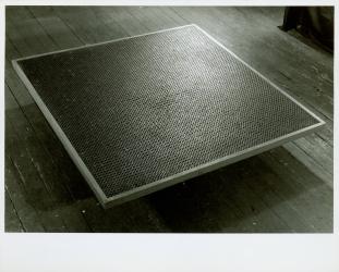Not on viewThe sculptural work by Eva Hesse pictured here began its life as a waist-high table built by Sol LeWitt for his first gallery show. After the show, LeWitt shortened the table and gave it to Hesse, who in turn added thousands of rubber washers to its surface and re-gifted it to LeWitt, referring to it as a drawing. (She joked that LeWitt now owed her a new table, which he did indeed produce.) LeWitt then installed glass over the rubber rings and used Washer Table as a proper coffee table. The well-known Dutch furniture designer Martin Visser proposed manufacturing it for a wider market, but never followed through.