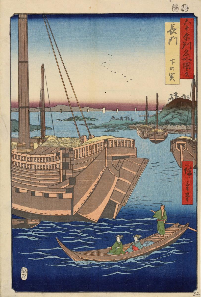Ships in the Harbor at Shimonoseki in Nagato Province, no. 52 from the series Pictures of Famous Places in the Sixty-odd Provinces