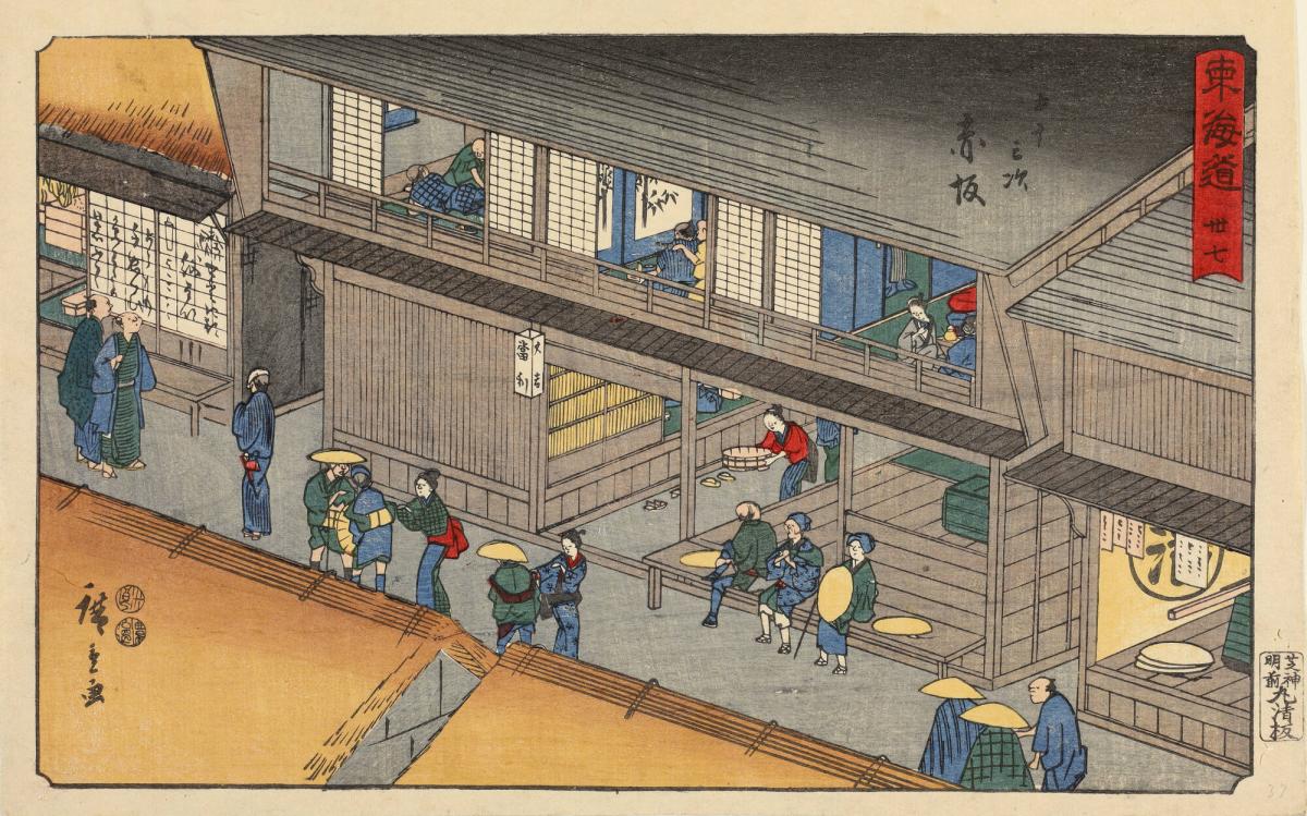Inns at Akasaka, no. 37 from the series The Fifty-three Stations of the Tōkaidō, also called the Reisho Tōkaidō