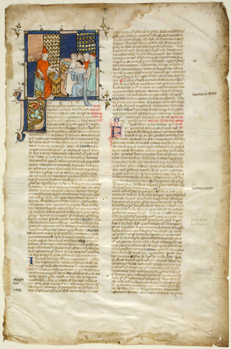 Leaf from a Book of Canon Law with Miniature of a Group of Canons with a Bishop