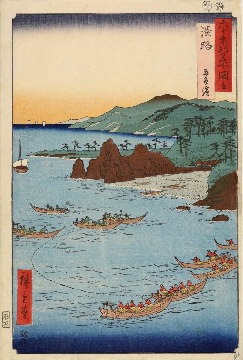 Five-color Beach in Awaji Province, no. 54 from the series Pictures of Famous Places in the Sixty-odd Provinces