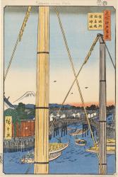 The Minato Shrine and Inari Bridge at Teppōzu (Teppōzu Inaribashi Minato Jinja), from One Hundred Famous Views of Edo (Meisho Edo hyakkei)