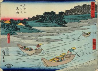 Ferry Boats on the Tenryu River near Mitsuke, no. 28 from the series The Tōkaidō