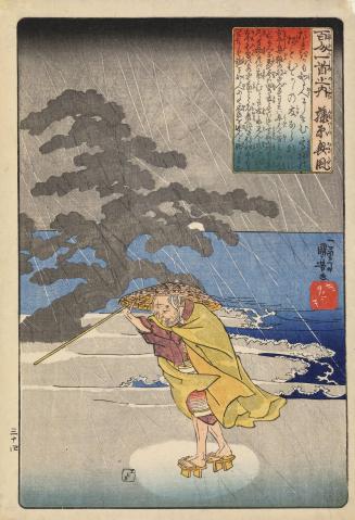 The Poet Fujiwara no Okikaze Passing the Old Pine at Takasago in an Evening Rain, no. 34 from the series The One Hundred Poems