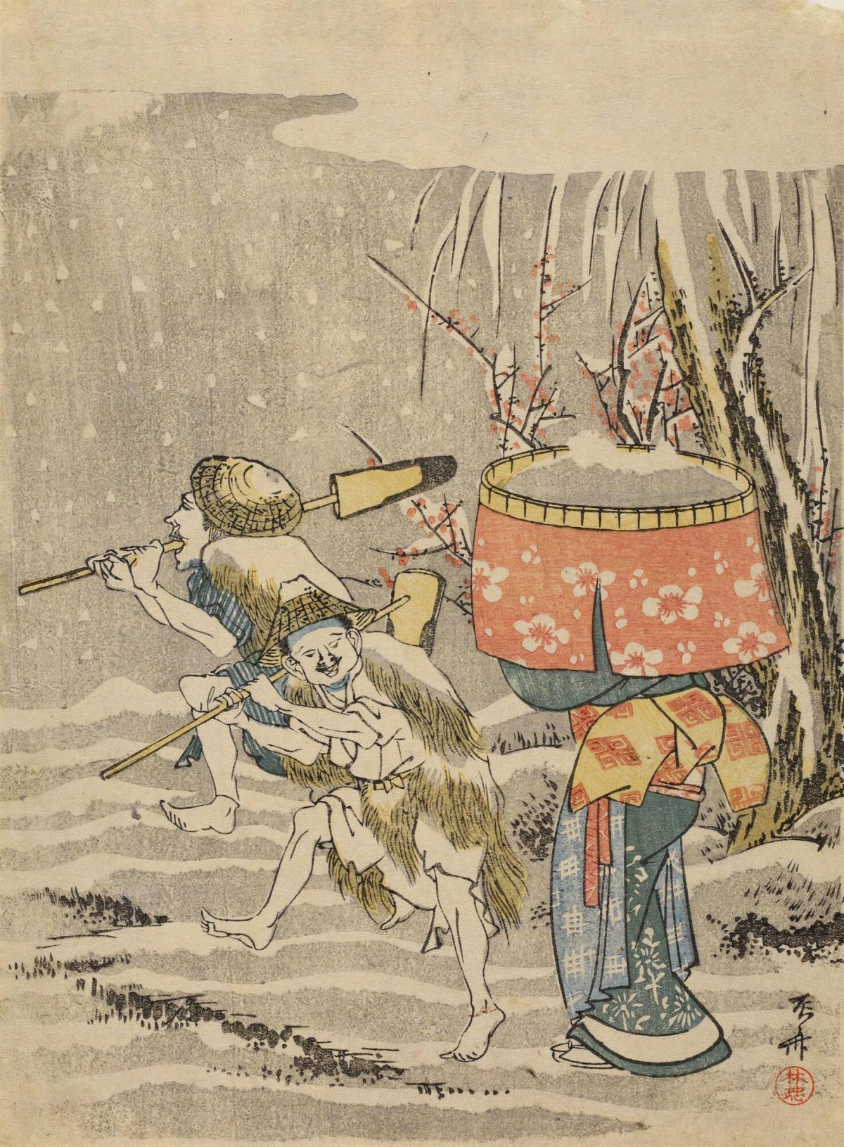 Peasants in Snow Startled by a Woman with a Bucket on Her Head