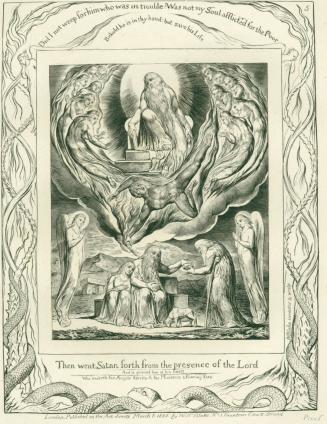 Not on viewPainter, poet, and printmaker William Blake was an eccentric visionary and ardent nonconformist known for his mystical themes and innovative forms. Largely underappreciated by contemporary critics, Blake’s works are now lauded for their elusive symbolism and complex personal mythology. As one of his final and most commercially-successful projects, Blake produced a series of 22 engravings to illustrate the biblical Book of Job, which tells the story of a righteous man whose faith is tested by the trials of Satan. Blake identified with Job’s suffering, due to his own struggles with poverty and lack of critical recognition. The Job narrative also mirrors Blake's artistic vision: Blake was deeply opposed to academic art, and in his interpretation of the tale Job is transformed from despair to redemption through a spiritual belief in the power of individual imagination.