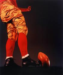 Not on viewFeatured on the cover of Edgerton’s first book Flash! (1939), Placement Kick was performed in the total darkness of the photographer’s studio. The light intensity from a single-burst electronic flash allowed for the capture of the precise moment of impact with the football, making this image one of the first indoor color photographs ever taken. The compression of the football and the athlete’s clenched fist reveal his determination and accuracy.