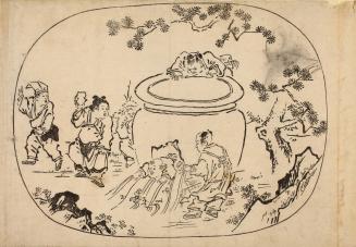 Sima Guang Saves a Playmate from Drowning in a Water Jar, from an untitled album of monochrome pictures in Kano style