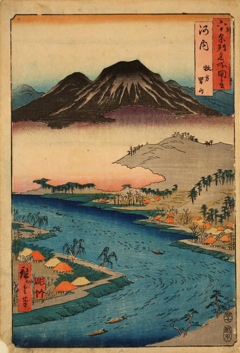 Otoko Mountain at Makigata in Kawachi Province, from the series Pictures of Famous Places in the Sixty-odd Provinces
