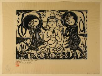 Not on viewA renowned master of woodblock printmaking, Munakata Shikō was connected with the early 20th century Creative Prints (Sōsaku-hanga 創作版画) movement, a reaction against the complex, collaborative division of labor that had characterized the print industry of earlier centuries. Printmakers of the movement argued that a print artist should not only draw the designs, but also cut and ink the woodblocks, allowing a fuller expression of the artist’s intent. Munakata often worked directly on the block without a preparatory sketch, giving his prints a rough, spontaneous quality that also reflects his connections with the Folk Art (Mingei 民芸) movement.