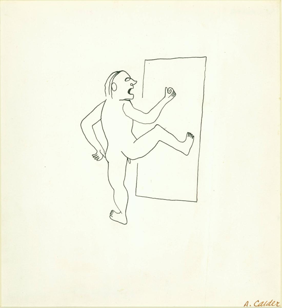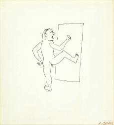 Alexander Calder made a series of 85 drawings to illustrate Three Young Rats and Other Rhymes, a whimsical book of anonymous nursery-rhymes edited by James Johnson Sweeney and published by the dealer Curt Valentin in 1944. The artist’s playful and sometimes humorous interpretations of the rhymes are rendered in a simplified and continuous linear style. These compositions recall Calder’s imaginative wire sculptures, impressively formed out of single pieces of thin wire to resemble line drawings in three-dimensional space.