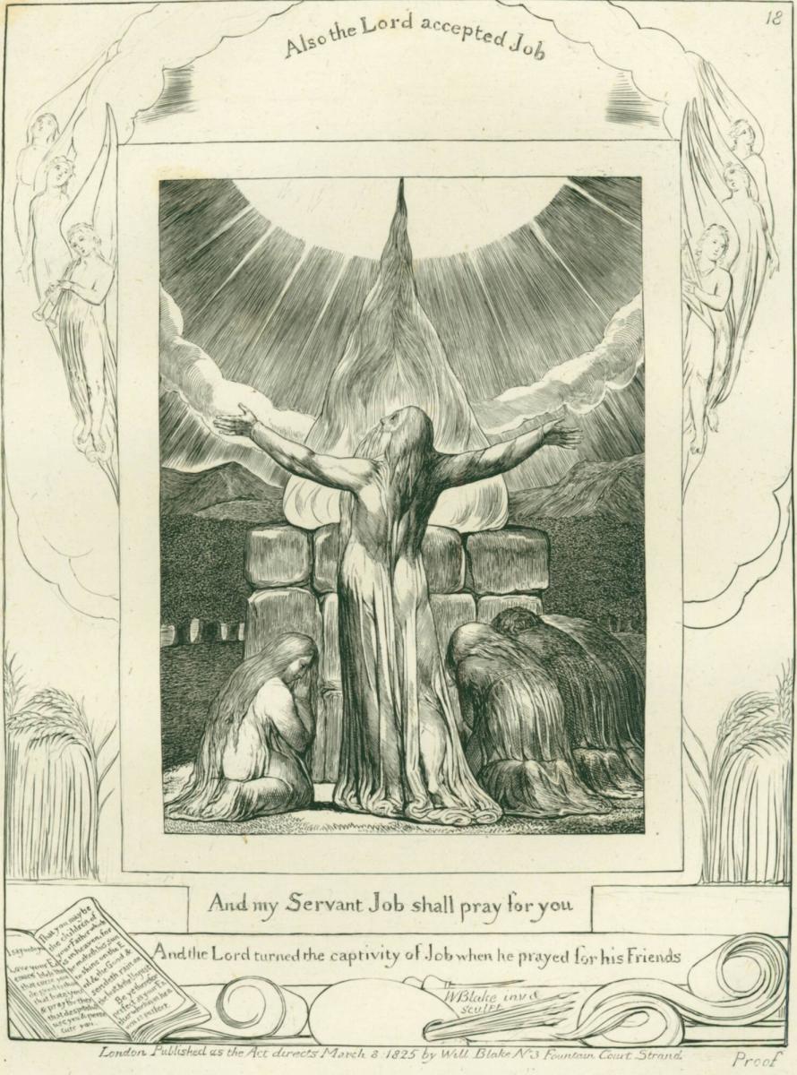 Not on viewPainter, poet, and printmaker William Blake was an eccentric visionary and ardent nonconformist known for his mystical themes and innovative forms. Largely underappreciated by contemporary critics, Blake’s works are now lauded for their elusive symbolism and complex personal mythology. As one of his final and most commercially-successful projects, Blake produced a series of 22 engravings to illustrate the biblical Book of Job, which tells the story of a righteous man whose faith is tested by the trials of Satan. Blake identified with Job’s suffering, due to his own struggles with poverty and lack of critical recognition. The Job narrative also mirrors Blake's artistic vision: Blake was deeply opposed to academic art, and in his interpretation of the tale Job is transformed from despair to redemption through a spiritual belief in the power of individual imagination.