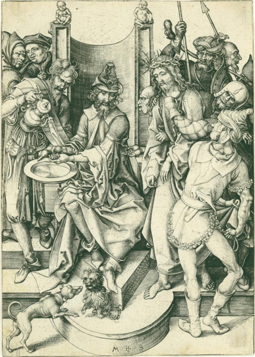 The theme of Christ's Passion appears often in Schongauer's 116 known engravings, the majority of which were devoted to religious subjects. This print comes from a Passion cycle that begins with Christ's Agony in the Garden and concludes with his Resurrection. Many scholars believe that this cycle was completed in chronological order, and thus charts the evolution of Schongauer's engraving style.
