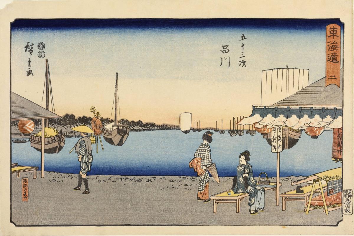 Teahouse by the Harbor at Shinagawa, no. 2 from the series The Fifty-three Stations of the Tōkaidō, also called the Reisho Tōkaidō
