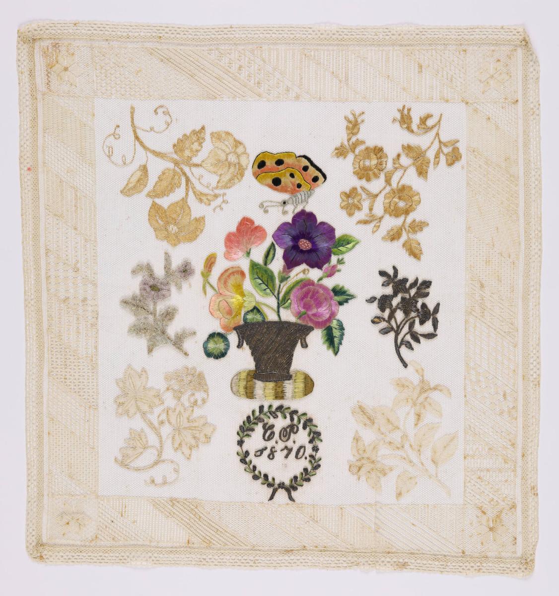 Net Sampler with Basket of Flowers and Floral Sprays