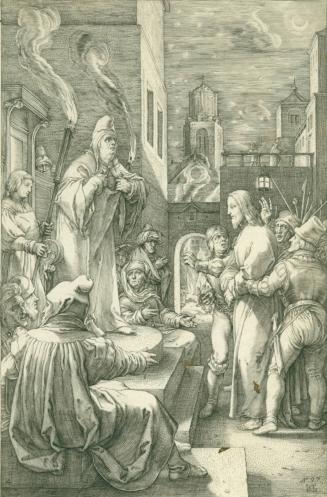 Not on viewDepicted here is one of twelve engravings that comprise the passion cycle executed by Hendrick Goltzius, dedicated to Cardinal Federigo Borromeo (1564-1631). Somewhat paradoxically, it was Goltzius' adeptness at replicating the styles of other artists that set him apart from his peers. According to the account provided in Karel van Mander's Schilder-Boeck of 1604, Goltzius became interested in imitating the styles of the old masters and of his contemporaries after visiting Italy in 1590. In this series, each print masterfully emulates the delicate crosshatching and softness of line that Dutch artist Lucas van Leyden (1494-1533) used in his engravings of 1512-20. As van Mander noted, Goltizus' compositions diverge from those of Lucas van Leyden, as Goltizus incorporates compositional elements taken from Albrecht Dürer's (1471-1528) passion cycles, as well as elements of the artist's own invention.