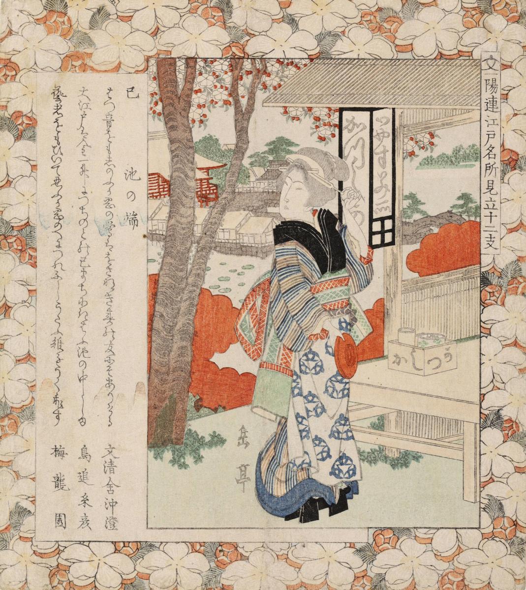 Snake: The Katsushika Teahouse at Ikenohata, from the series Famous Places in Edo Matched with Animals of the Zodiac for the Ichiyo Circle